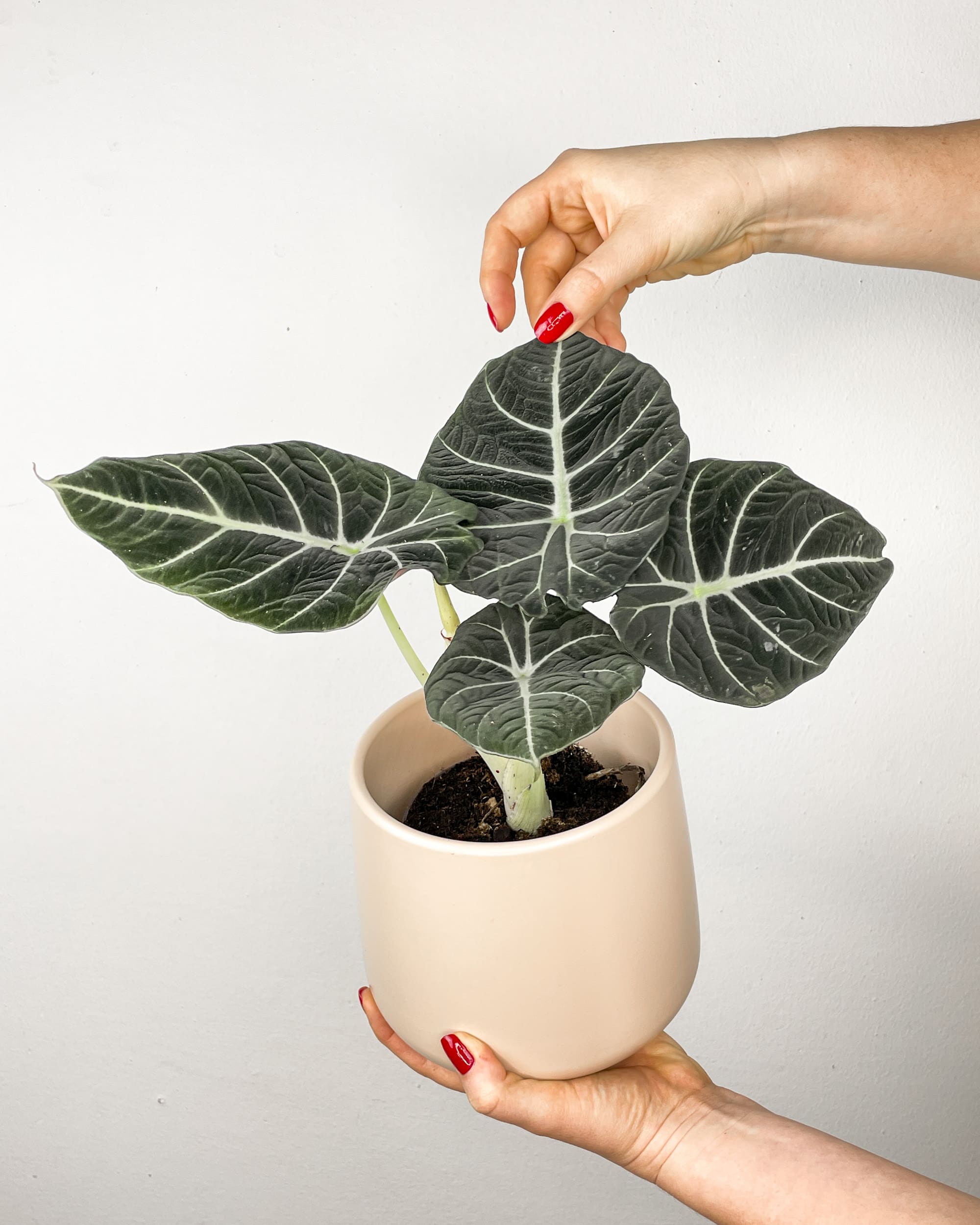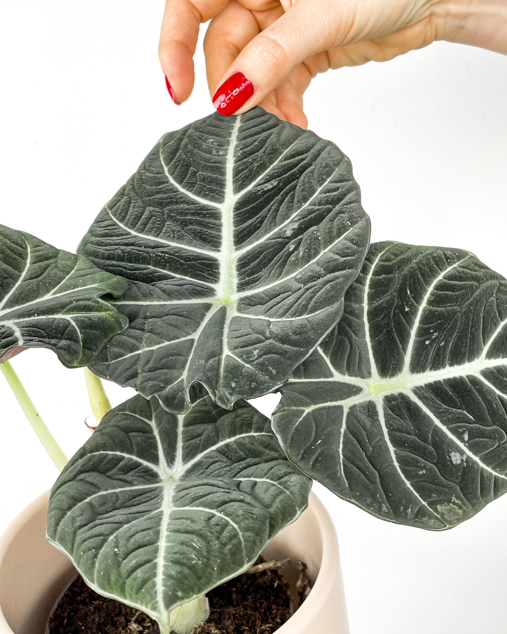Želiš li zaista ‘plemenite’ cvjetiće, ja sam pravi izbor. Moji nezaboravni listići daju izgled tamnog, ali mekanog baršuna isprepletenog srebrnim žilicama. Ovaj put te razveseljavam u već zrelijem obliku. Kao i svaka alokazija, volim višu vlažnost zraka.