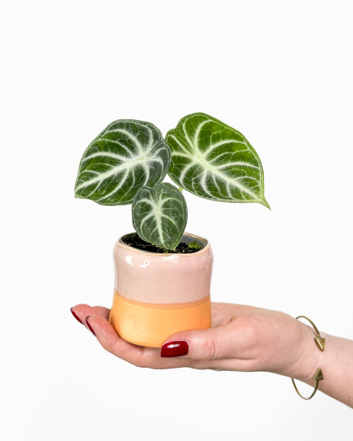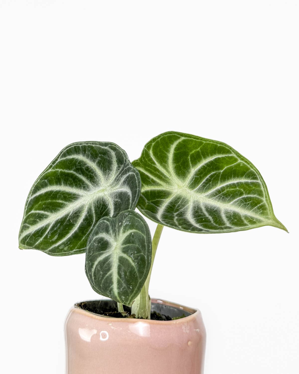 Ja sam vrlo slična svojoj plemenitoj rođakinji Alocasia ‘Black Velvet’, ali su moji listovi nešto manji i okrugliji. Obje imamo prekrasne crne listove sa svijetlim žilama koje mogu očarati svakoga! Kao i svaka alokazija, volim višu vlažnost zraka.