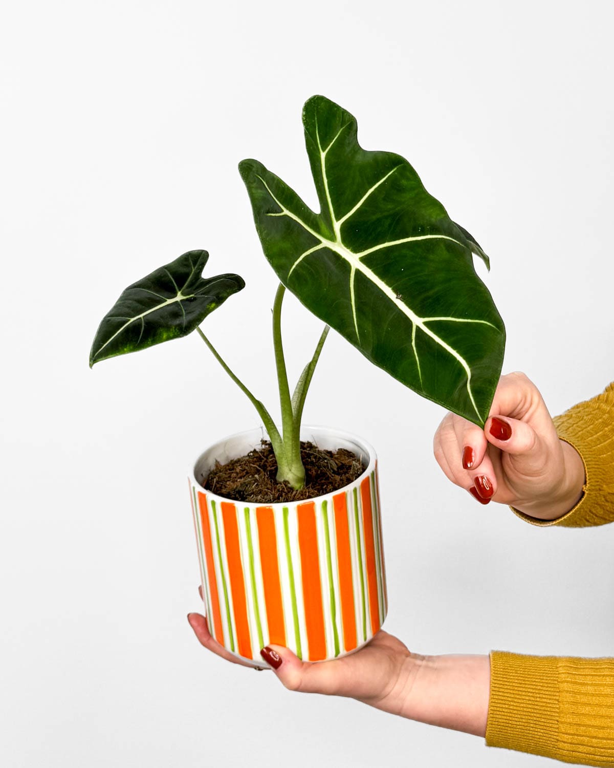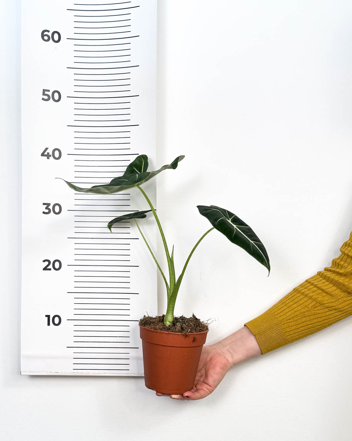 Ja sam Alokazija ‘Frydek‘ (Alocasia micholitziana), izuzetno elegantan hibrid, poznat prvenstveno po baršunastim listovima, zbog kojih izgledam posebno ‘plemenito’. Moj zaštitni znak su prekrasni kontrasti između tamno zelene boje listova i tankih bijelih žilica. Kao takva, obavezna sam biljka za svakog ljubitelja sobnih biljaka. Mogu narasti i do 90 cm u visinu, a moji listovi mogu doseći duljinu od 60 cm!