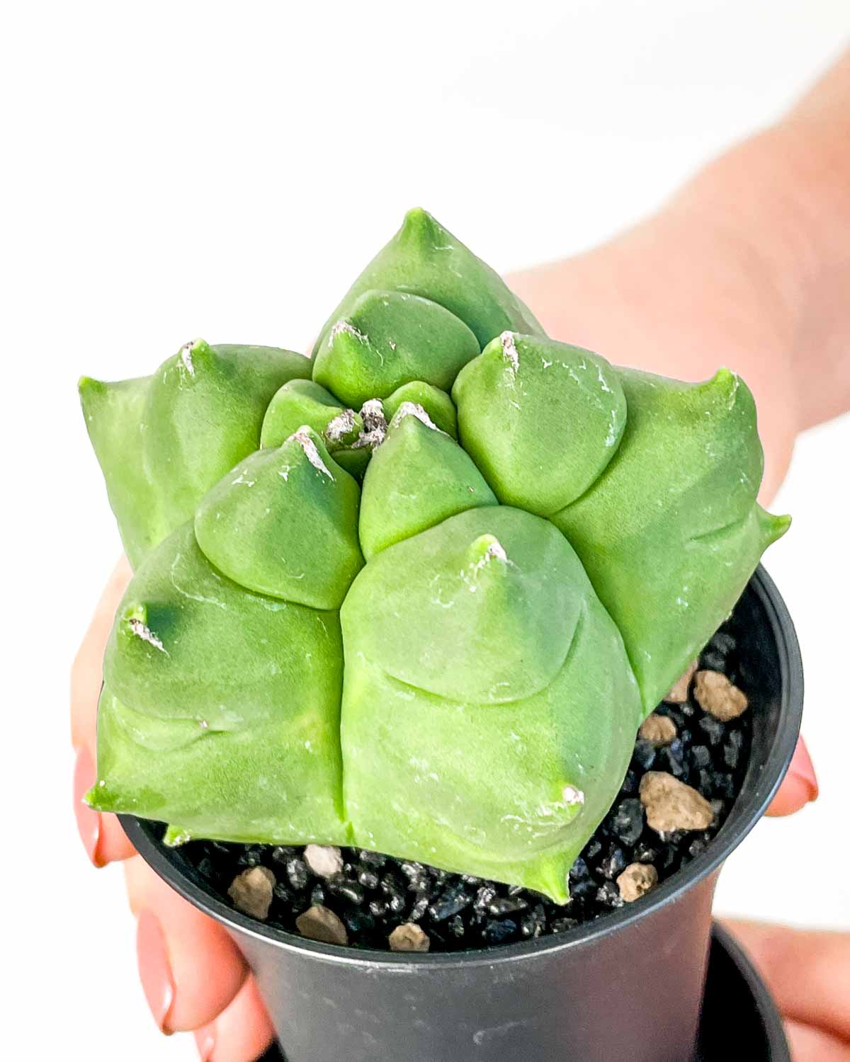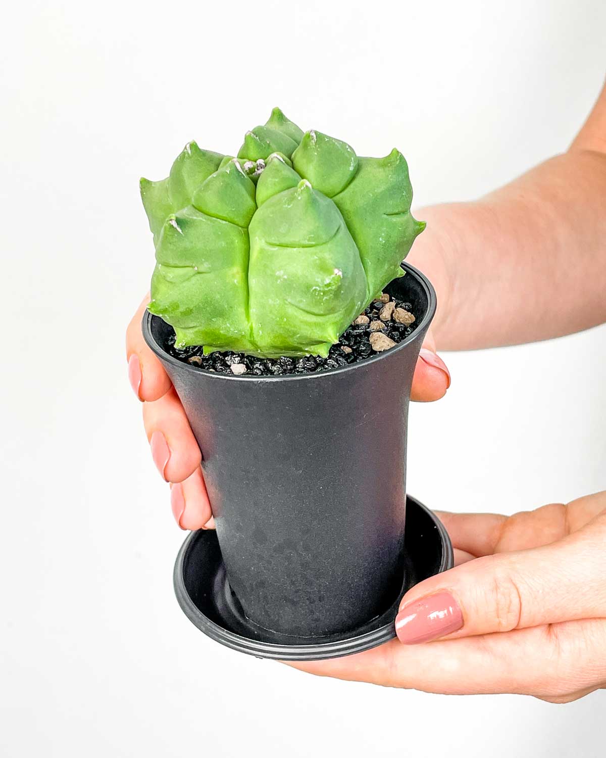 Moja njega je jednostavna, zalij me kad mi se zemlja potpuno osuši i stavi me na mjesto s puno svjetlosti. Kad dođe vrijeme da me presadiš u veći cvjetni lonac, bit ću sretan/sretna s mješavinom zemlje za sukulente i kaktuse.