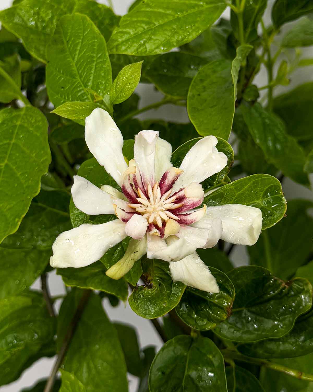 Ja sam Mirisavac ‘Venus’ (Calycanthus), križanac triju različitih vrsta mirisavaca, stvoren s jednim jedinim ciljem – da postanem prekrasan grm s velikim, kremasto bijelim cvjetovima koji nježno mirišu na limun i začine. Moji cvjetovi imaju u sredini ružičaste nijanse, što me čini posebno atraktivnim u svakom vrtu. Cvjetam u proljeće i rano ljeto, obično od svibnja do lipnja, i sa sobom donosim bogato cvjetanje te ugodan miris koji ispunjava zrak. Mogu narasti do 1,5 do 2 metra u visinu i širinu, a konačnu veličinu postižem u 5-7 godina.
