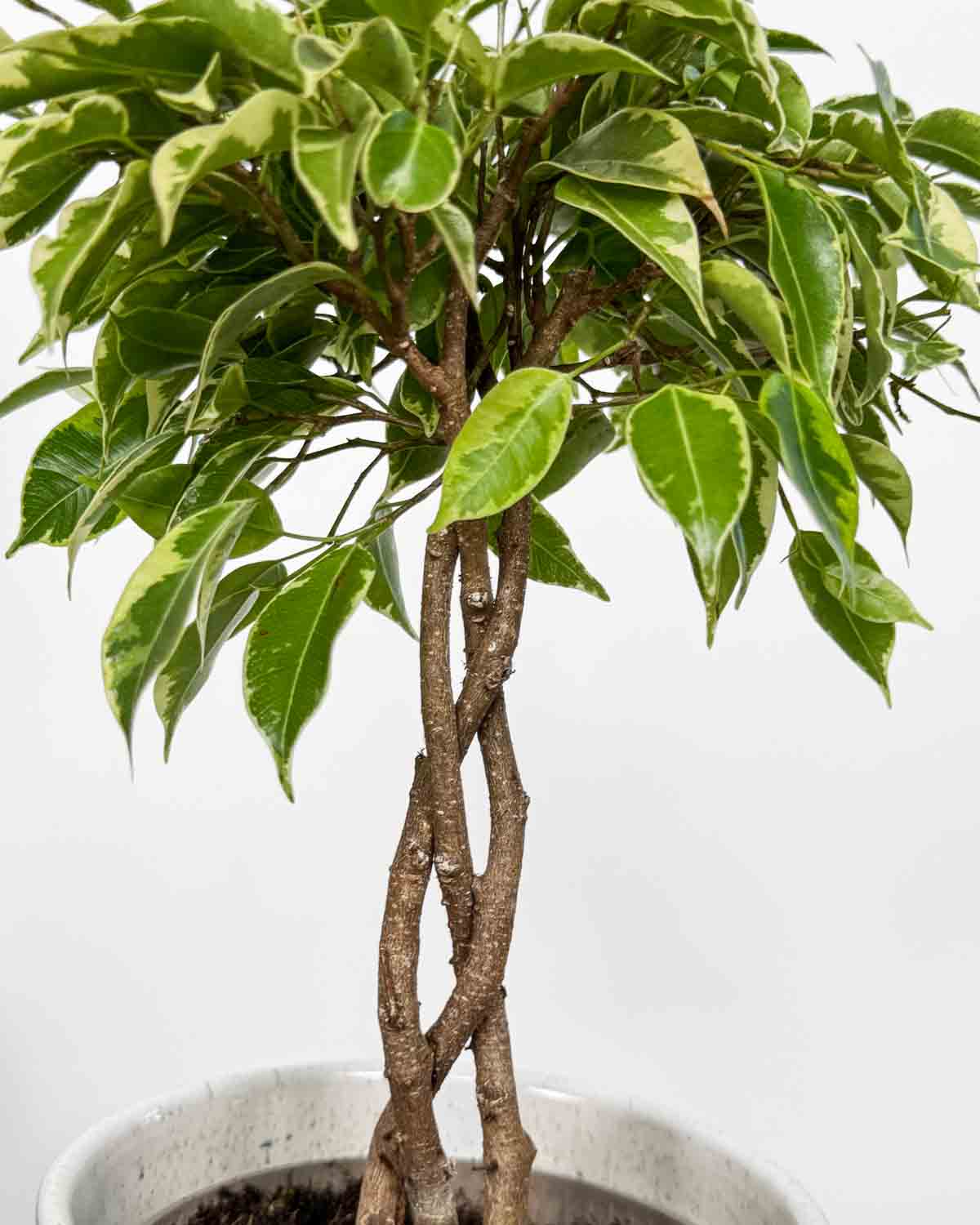 Sigurno me već poznaješ. 😉 Ja sam fikus benjamin ‘Bushy King‘ (Ficus benjamina), ili jednostavno benjamin. Za mene su karakteristični mali, simpatični listovi. Za kultivar ‘Bushy King’ karakteristična je svjetlija obruba lista. Moje deblo je isprepleteno u pletenicu, što mi daje još zanimljiviji izgled. Fikusi mogu narasti prilično veliki, samo me postavi na svijetlo mjesto bez propuha i nakon toga me više ne premještaj. Naime, ne volim promjene okoline i mogu u znak protesta odbaciti nekoliko listova. Ali bez brige, uvijek lijepo rastem dalje 🙂