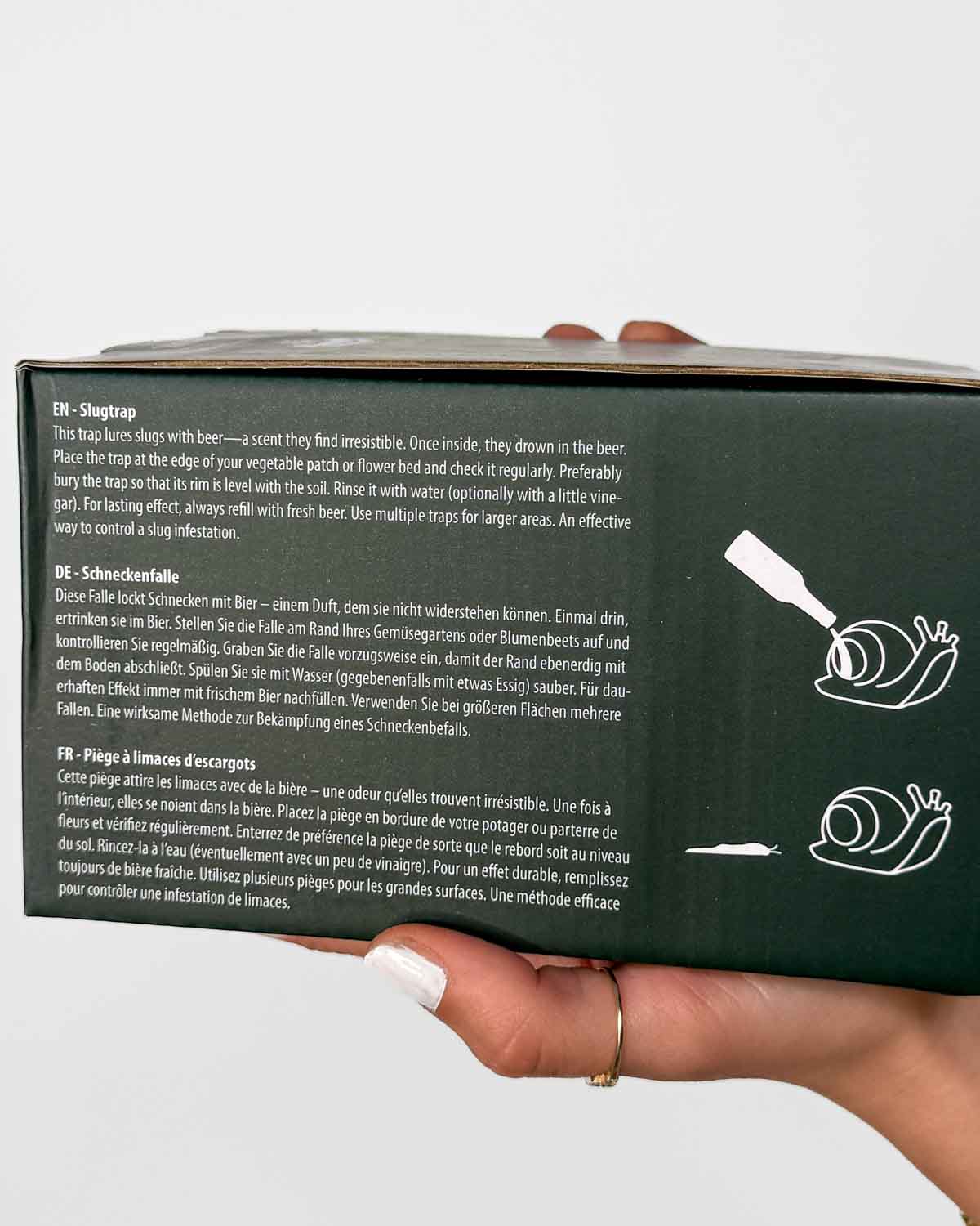 Zamka djeluje na principu privlačenja – napuniš je pivom, čiji miris privlači puževe. Kada se približe, upadnu u zamku i ne mogu više izaći. Radi se o ekološki prihvatljivoj metodi, jer ne koristi kemikalije i ne šteti drugim biljkama ili tlu.