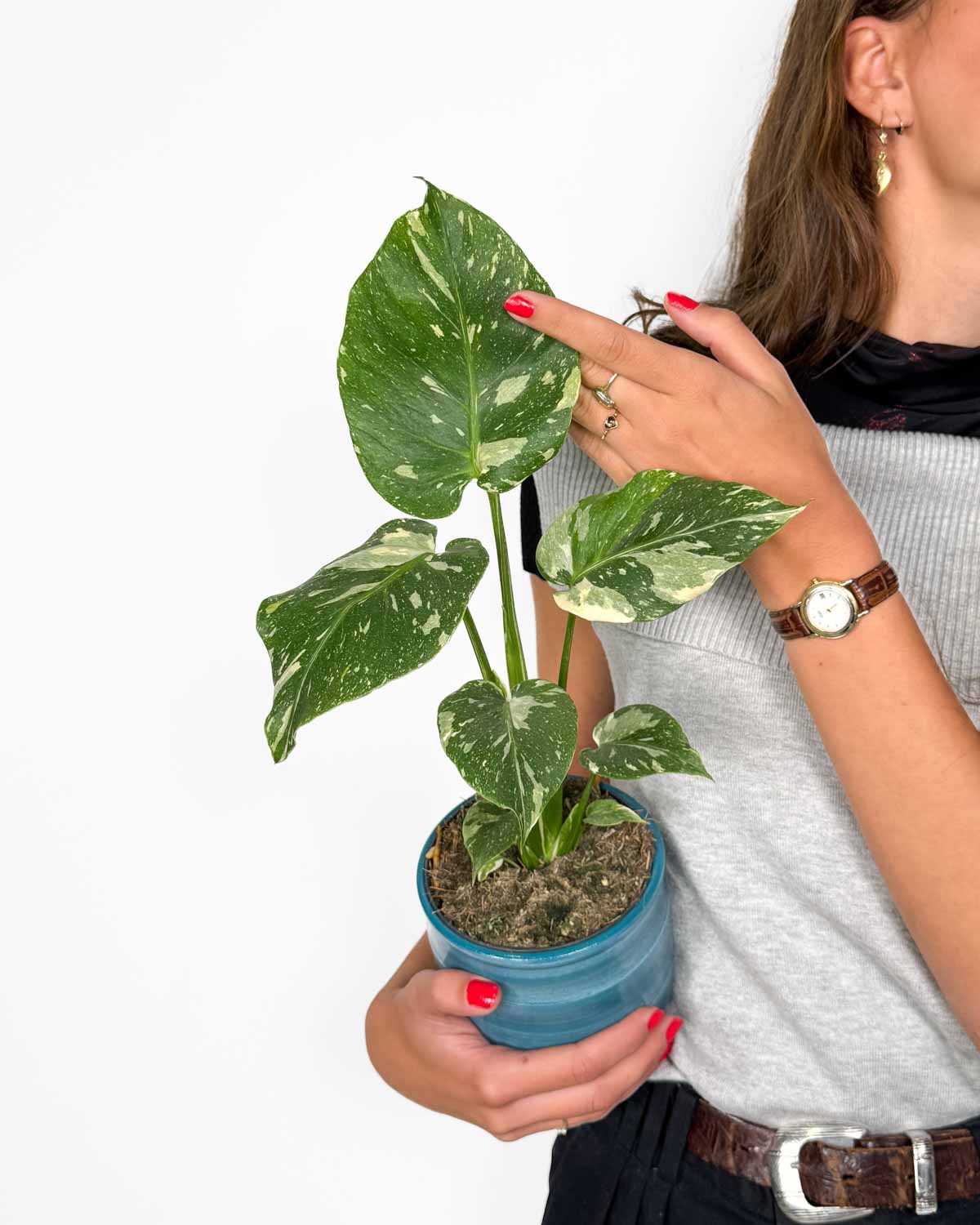 Ja sam Monstera deliciosa ‘Thai Constellation’ (Monstera), posebna varijagirana verzija najpoznatije sobne biljke, obožavanog zelenog monstruma. Napravljena sam u laboratoriju na Tajlandu, otkud sam se proširila dalje po svijetu. Svi obožavaju moje listove kremasto bijele boje, koji predivno pašu uz klasičnu zelenu.