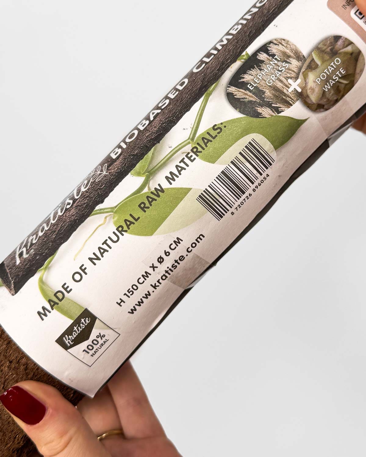 Ja sam 100 % prirodni oslonac, idealan za monstere, potose i filodendrone, koji žele nešto na što se mogu dobro uhvatiti. Napravljen sam od krumpirovih kora i trstikovca Miscanthus Giganteus – potpuno prirodno, bez plastike i kemikalija!