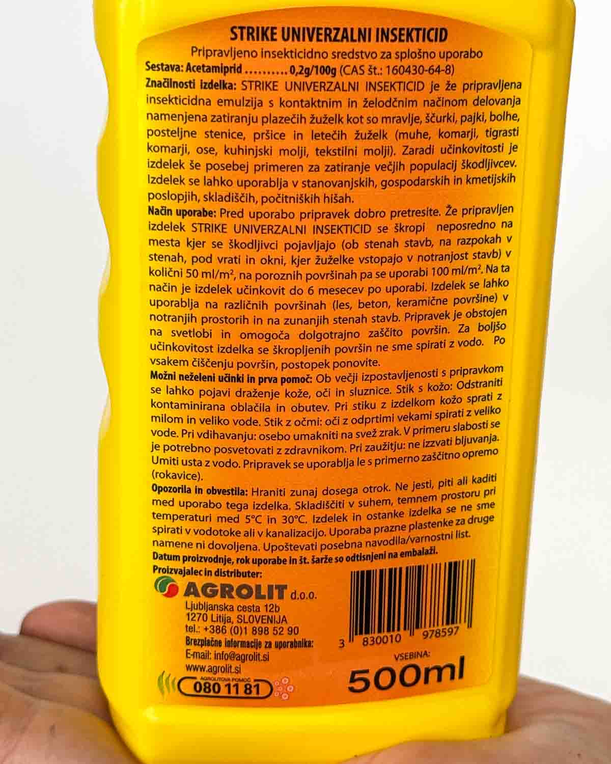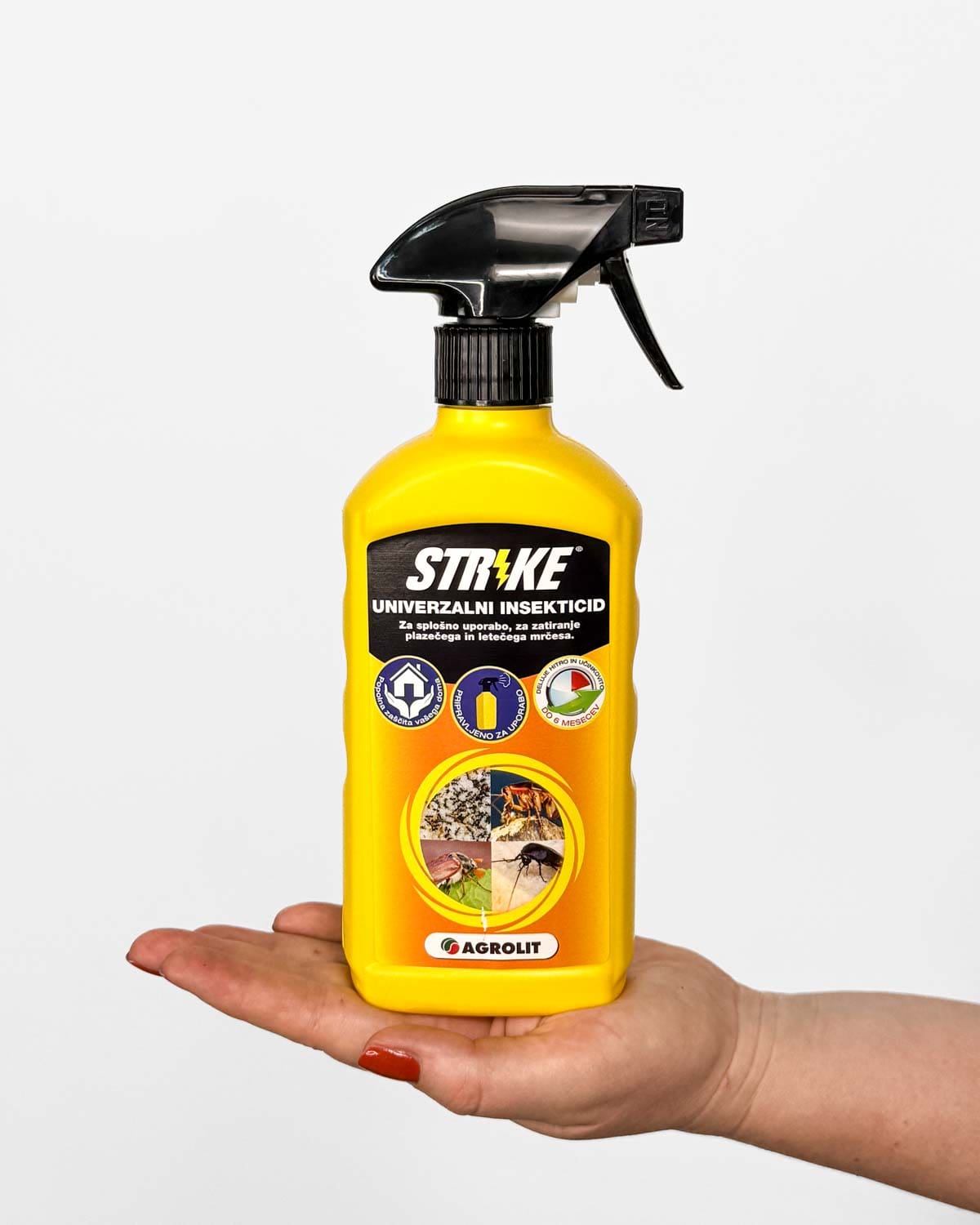 STRIKE UNIVERZALNI INSEKTICID je već pripremljena insekticidna emulzija s kontaktnim djelovanjem namjenjena borbi protiv puzajućih insekata i biljnih nametnika kao što su tripsi, vunene uši, mrtvačke mušice, crveni pauk, buhe, komarci, …
